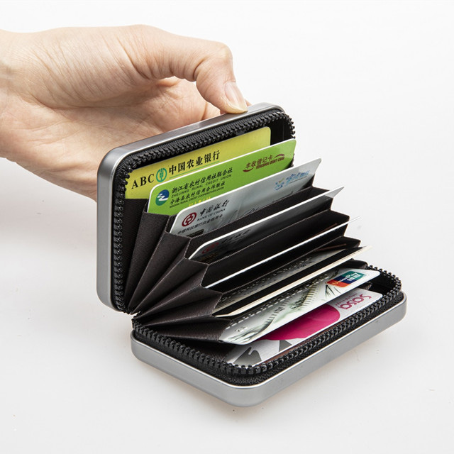 Со 9 пространи слотови, овој држач за картичка нуди доволно простор за сместување преку 20 кредитни картички, осигурувајќи дека ги задоволува вашите дневни потреби за складирање без напор. Со мазни и сигурни патенти, овој држач за картичка гарантира удобност во вашата секојдневна употреба. Сигурната брава гарантира дека вашите картички остануваат безбедни кога не се во активна употреба. Нашиот држач за РФИД картичка за заштита е прецизно дизајниран за ефикасно да ги спречи несаканите РФИД скенери. Специфично дизајниран да ги заштити вашите кредитни картички, дебитни картички, банкарски детали, паметни картички, возачки дозволи за РФИД и други РФИД картички, овој држач нуди напредна заштита од неовластени обиди за скенирање.
